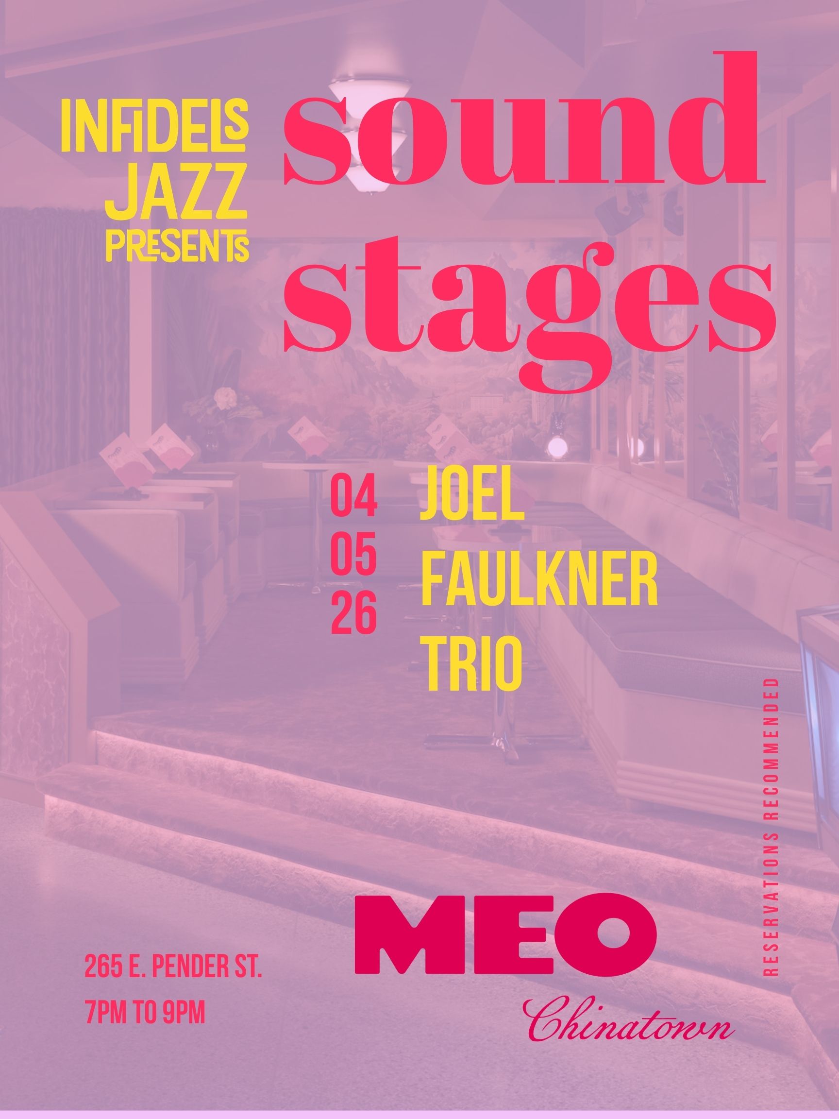 Joel Faulkner Trio at Meo Chinatown 7-9pm | No cover Learn More / Reservations