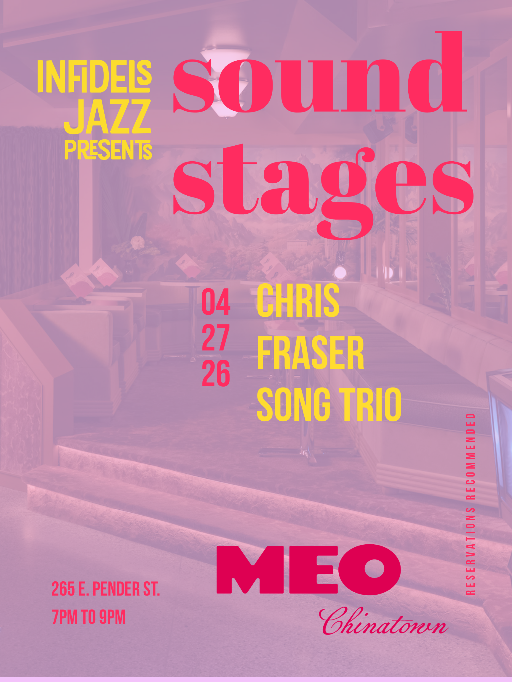Meo Chinatown 265 East Pender Street, Vancouver, BC, CanadaChris Fraser Song Trio at Meo Chinatown 7-9pm | No cover Learn More / Reservations