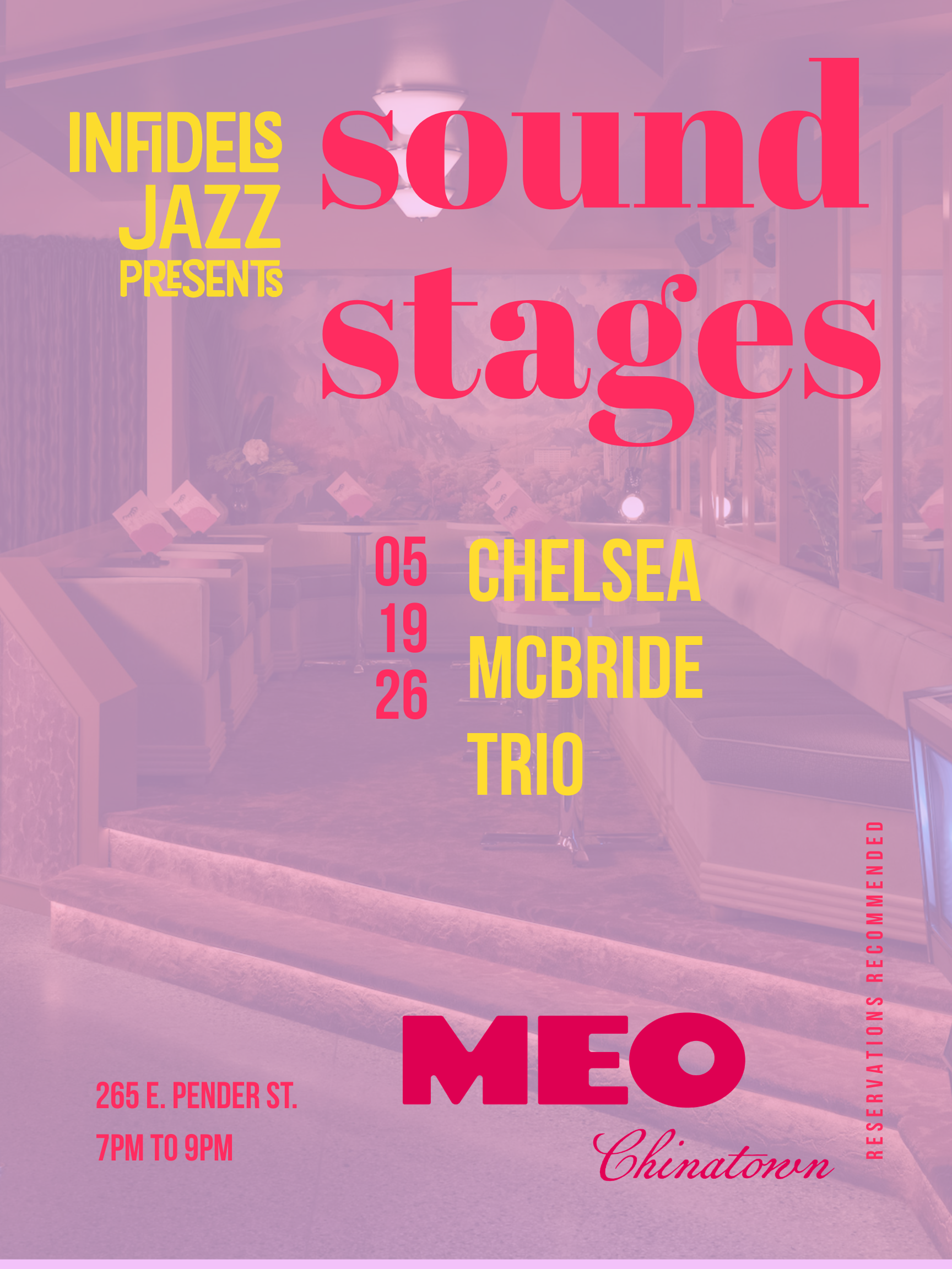 Chelsea McBride Trio at Meo Chinatown 7-9pm | No cover Learn More / Reservations